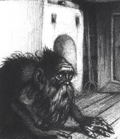 The resident boggart here was initially an unusually helpful specimen, assisting the farmer with everyday tasks and appearing to be eager to please. While it would on occasion speak out from the darkness to the farmer, the boggart would never be seen. One night, the farmer’s son waited up one evening in hiding to watch the boggart. He saw a creature that appeared to be a small, wrinkled old man, dressed in tattered clothing. In an attempt to reward the boggart for its assistance, the son left out a pair of suitably-sized wooden clogs for him to wear. However, the plan backfired, and on receipt of the shoes the boggart became cruel and vindictive, hiding or breaking the family’s possessions or disrupting the farm. After waking one morning to find his prize bull stood on the roof of his home the farmer resolved to leave. However, after packing up his wagon he heard the boggart call out, asking him to wait while it retrieved its clogs before it came with him. Resigned to the fact that the creature would follow him even if he left, the farmer reluctantly returned to his home.