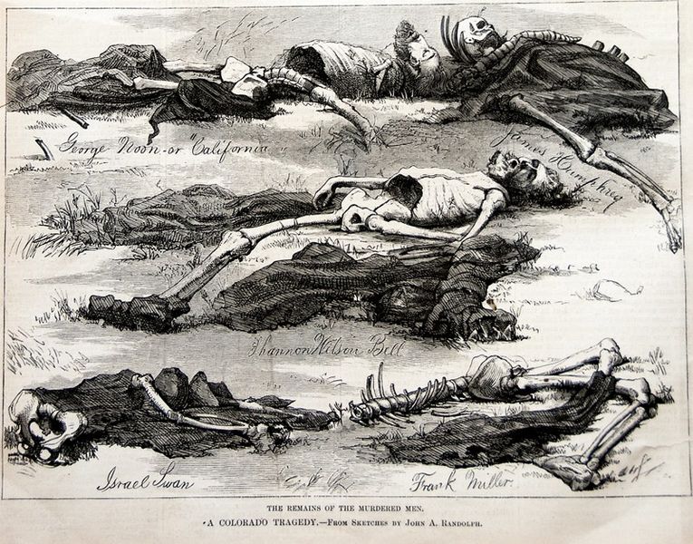 Months later, an illustrator for Harper’s Weekly stumbled across the grim scene of five skeletal corpses in a shallow gulch. The man, John Randolph, sketched the scene he had come across before alerting authorities. Investigation of the bodies established that ‘extreme violence’ had been used to kill them: one’s head was missing, while another had a fractured skull. Of the three corpses that were still largely intact, signs of flesh having been removed with a knife were found. A rough shelter was found nearby, with signs of a path to the bodies that suggested the occupant had repeatedly returned to the scene to retrieve meat from the bodies.